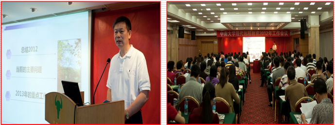 曹中一院长做了《坚持求真务实,提升品牌形象》的工作报告。全面回顾与总结了网络教育2012年的主要工作,肯定了一年来网络教育建设与发展所取得的可喜成绩,客观分析了面临的困难与存在的问题,强调校外学习中心是中南大学网络教育的重要组成部分,校外学习中心的规范管理与支持服务质量直接反映中南大学网络教育的办学水平。希望通过本次工作会议,进一步统一思想,凝聚力量,振奋精神,积极探索,求真务实,打造中南大学网络教育的优质品牌。报告对《中南大学现代远程教育校外学习中心工作基本要求》进行了重点解读,并在此基础上提出2013年中南大学网络教育发展的工作重点。要求学习中心紧紧围绕“全面落实基本要求,扎实推进真实学习”的主题,在健全机制体制、规范招生宣传、严格收费管理、提高教材到位率、加强考风建设、推进统考促学帮学、提高论文(设计)质量、鼓励追求学位等方面,理清思路、形成共识、产生合力,进一步推动我校网络教育迈上新的台阶。
