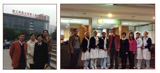 曹院长一行和重庆电大继续教育学院院长赵渝、副院长邓红学等一起深入綦江中医院、新桥医院和第九人民医院调研护理学专业学员学习状况,并与优秀学员代表苟红娟、刘雨、代雨欣等进行面对面的交流,了解她们的学习、工作情况,对她们通过参加中南大学网络教育学习获得进步提升,在工作中取得了突出成绩给予了高度评价。同时,也希望她们积极参加中南大学网络教育征文活动,把自己的学习过程、成长经历进行归纳总结,让老师和同学们共同分享,用真实的典型事例对网络教育给予正面的引导、宣传。