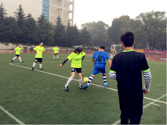 11月11日下午,初冬的长沙阴雨绵绵,中南大学首届“旷远杯”教职工五人制足球赛在寒风细雨中继续开战,网络教育学院和档案馆组建的直属队迎来残酷的八进四淘汰赛,全体球员不畏强敌,团结一致、顽强拼搏,全场比赛异常激烈,双方2:2战平进入点球大战,最终2:4不敌对手遗憾止步八强,但直属队奋力拼搏、永不放弃的精神值得每一个观众喝彩点赞!