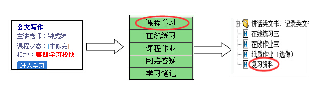 从学院【首页】—【学生学习平台】——选择相关【课程】——【复习资料】下载。因学院有二个课件平台,查找方式稍有不同,具体查找方式如下: