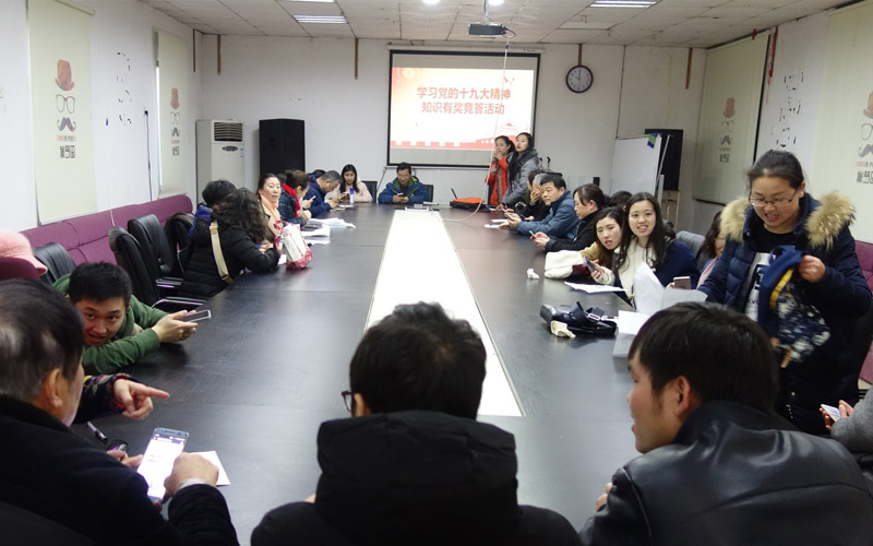 下午,两个单位进行了学习党的十九大精神知识有奖竞答活动,活动以“三严三实”分组进行团体抢答,现场气氛热烈。在党员同志的带领下,全体员工积极参与,团结协作,活动圆满完成。