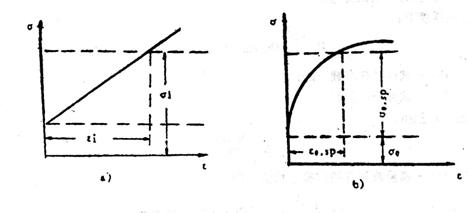 (二)资料整理: 1.把测定资料按上面的计算公式进行计算。 各级荷载下对应的回弹变形值fi取试件两侧所测回弹变形值平均数。破坏强度及材料模量值取该组三个平行试件的平均值,但相对误差不得超过15%,超过者不得参加平均,此时,若改用其中两个平行试件的平均值时,其相对误差不得超过7%,超过时该组试验舍弃。 2.用每个试件计算的σi和i的值。在角坐标系内绘制σ- 关系图。为了较准确地寻找σi和的关系,也可将坐标原点平移到第一个测点进行资料整理,绘制σ----—ε关系图。 3.根据σ-的关系,材料回弹模量按下面的方法取值: (1)如果σ-δ为直线关系时,以该直线的斜率来表示该试件的回弹模量值(如图4—4a)材料的代表回弹模量按第 1点说明取用。 (2)如果σ-为曲线关系时,以0.5P时的σ-之割线斜率为该试件代表模量值(如图4—4b);按第1点说明取三个试件0.5P时的平均模量值为该材料的代表回弹模量值。 (3)无论直线或曲线关系,图解时应尽量通过原点,如果在σ轴上产生截距(正或负),按关系误差处理,应当予以扣除,其具体计算方法为: