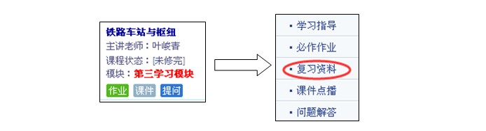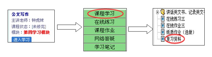 从学院【首页】—【学生学习平台】——选择相关【课程】——【复习资料】下载。因学院有二个课件平台,查找方式稍有不同,具体查找方式如下: