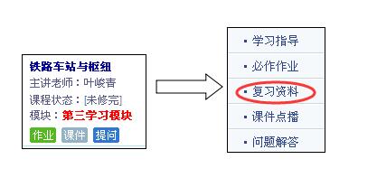 从学院【首页】—【学生学习平台】——选择相关【课程】——【复习资料】下载。因学院有二个课件平台,查找方式稍有不同,具体查找方式如下: