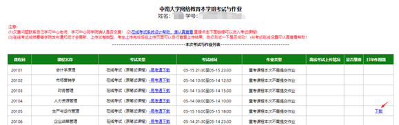 学习中心:登录学院首页【信息管理平台】——【考务信息】——【考试安排】——【考场安排下载】查询各学生各科的考试时间安排。