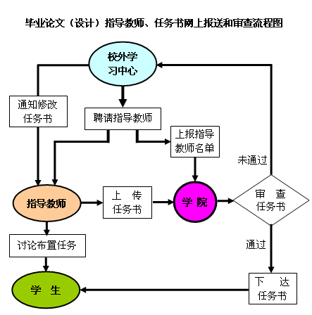 附件为毕业论文(设计)指导教师名单和“任务书”网上报送和审查流程图。