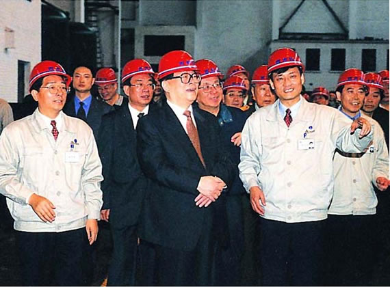 江泽民总书记在西南铝业集团责任有限公司视察时接见我校校友肖亚庆博士